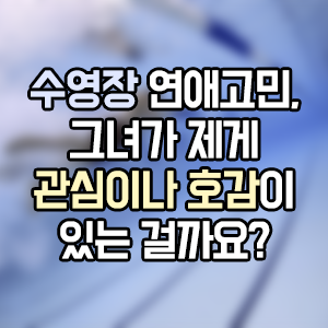 수영장 연애고민 중, S씨의 상황은 A급으로 아주 좋은 상태다. 상대가 먼저 인사를 건네 오고, S씨가 스몰토크를 시도했을 때 그녀가 제법 자세한 대답까지를 해줬다. 매일 저녁 수영장에서 마주쳤을 때, 인사하며 잠깐 대화하는 게 이상하거나 어색하지도 않은 관계다. 이 와중에도 S씨는